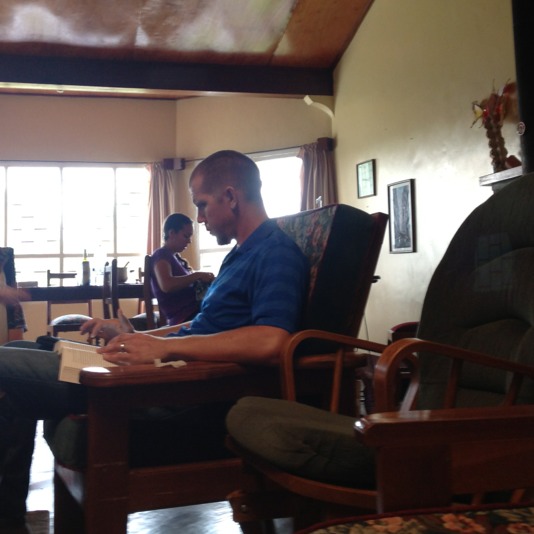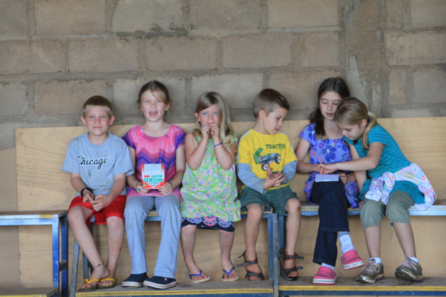 This is me and friends and siblings. I was doing a word search with one of my friends. We were hanging out at the hangar waiting for the helicopter to come back.